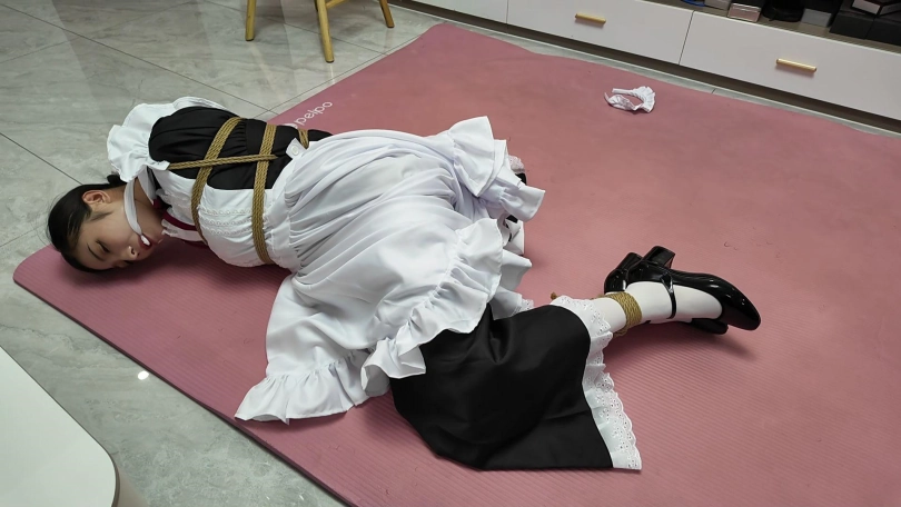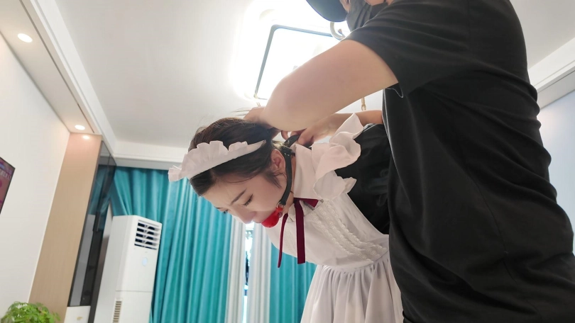 男子将绑架来的人妻装箱带走。回到家后开箱,经过一个月短暂的调教,佳佳暂时成为男子家中的女仆。不过这只桀骜不驯的小野猫似乎不太好训,于是男子借佳佳摔碎碗的契机,再次展开调教。他将佳佳绑好在客厅中,假装要离开。佳佳见机会难得,于是便努力挣扎,试图去到窗边呼救。就在佳佳快到窗边时,男子一把抓住佳佳,把她从希望的边缘一把拉了回去进一步调教。接着男子在客厅中吊起佳佳后手,给她戴上口球并且用绳子拉起口球带,强迫她抬起头,然后拉起裙子绑上股绳再扒开佳佳胸前的衣服,往两胸各塞入一颗[X_X]。只见佳佳被[X_X]刺激得口水直流站立不安,下身又被股绳勒住,只能不停地发出呜呜声祈求男子放过她。再往后,男子决心一步到位,接着将佳佳绑成个单腿吊缚,并且在下身加上个棒棒,两胸前的蛋也调至最高档,就这样,将佳佳调教至几近虚脱。最终,桀骜不驯的野猫终于被驯服,含住了象征屈辱和臣服的水晶柱,就这样佳佳调教成功,正式成为了男子家的奴隶女仆。开头的开箱环节是上回拍的时候让老哥顺便给拍的,开箱环节看得真爽。这回为了想看到的经典英伦风格女仆专门去按照佳佳的身材定了一件,白丝也换成稳重沉稳一点的,效果也是非常棒。全片一共三个段,因为时长和大小限制就先分成上下集了。老哥那拍摄的手法和认真程度真没的说,一如既往地敬业,我想看的就是这端庄典雅的女仆被一点点调教得下流,衣服从穿得整齐慢慢变成暴露又凌乱不堪,在这部里都给拍出来了。特别是佳佳这次化妆的妆容比第一集的效果还棒,挣扎的表演也是一如既往的卖力,第二段的时候戴上口球后口水流了满地。