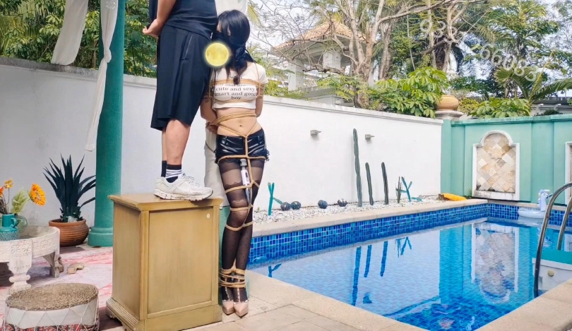 【欢乐谷】被捆绑放置在泳池别墅里尤物以及深度尺度调教