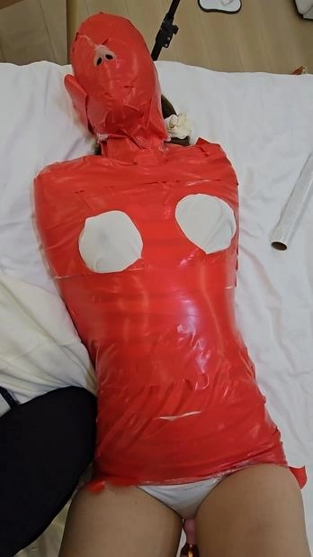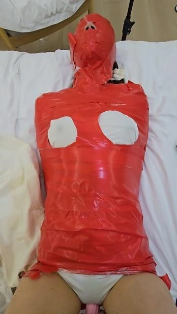 【小黑】胶带全包木乃伊,各种挑逗,真实对话,还有呼吸玩法,把胸口剪开,没穿内衣,乳头清晰可见,震动高潮,振到受不了。