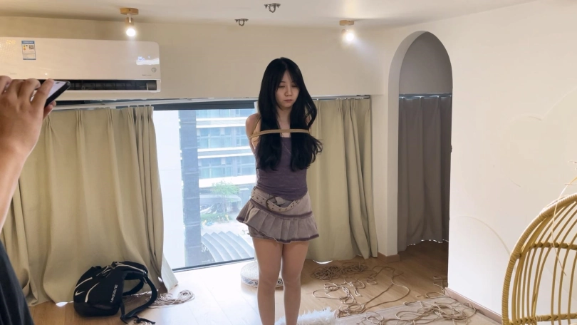 › 【绳师奥特曼】肉感新模直臂跪缚放置 带着大口球流口水