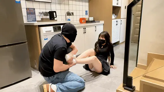 女主奋力挣扎 脚从鞋子里脱开 缩回脚死死握住 男主把女主鞋一扔 正要上前