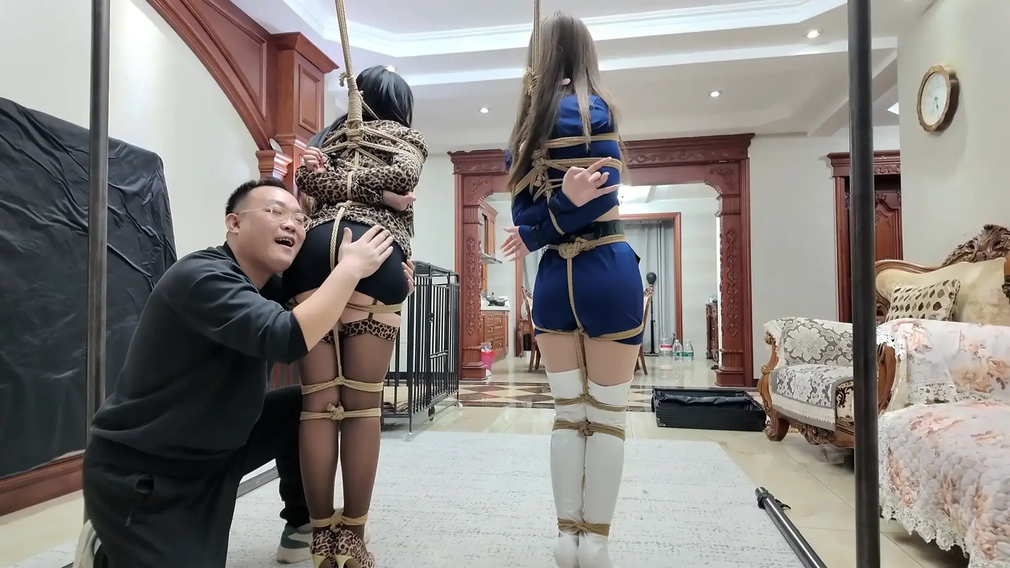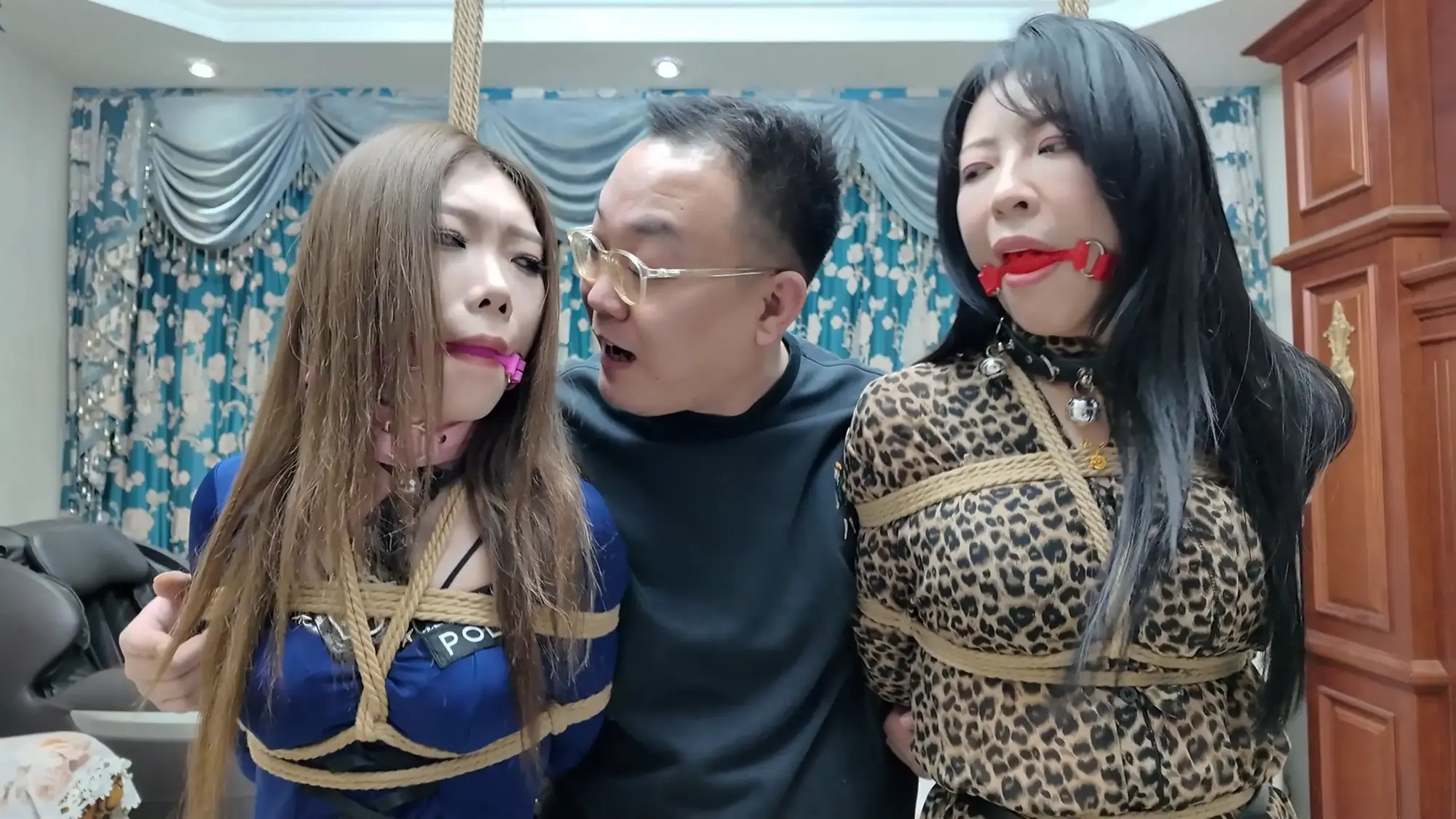 柴哥美滋滋的捆绑昏迷的小白,时不时看向旁边干着急的莫璃,