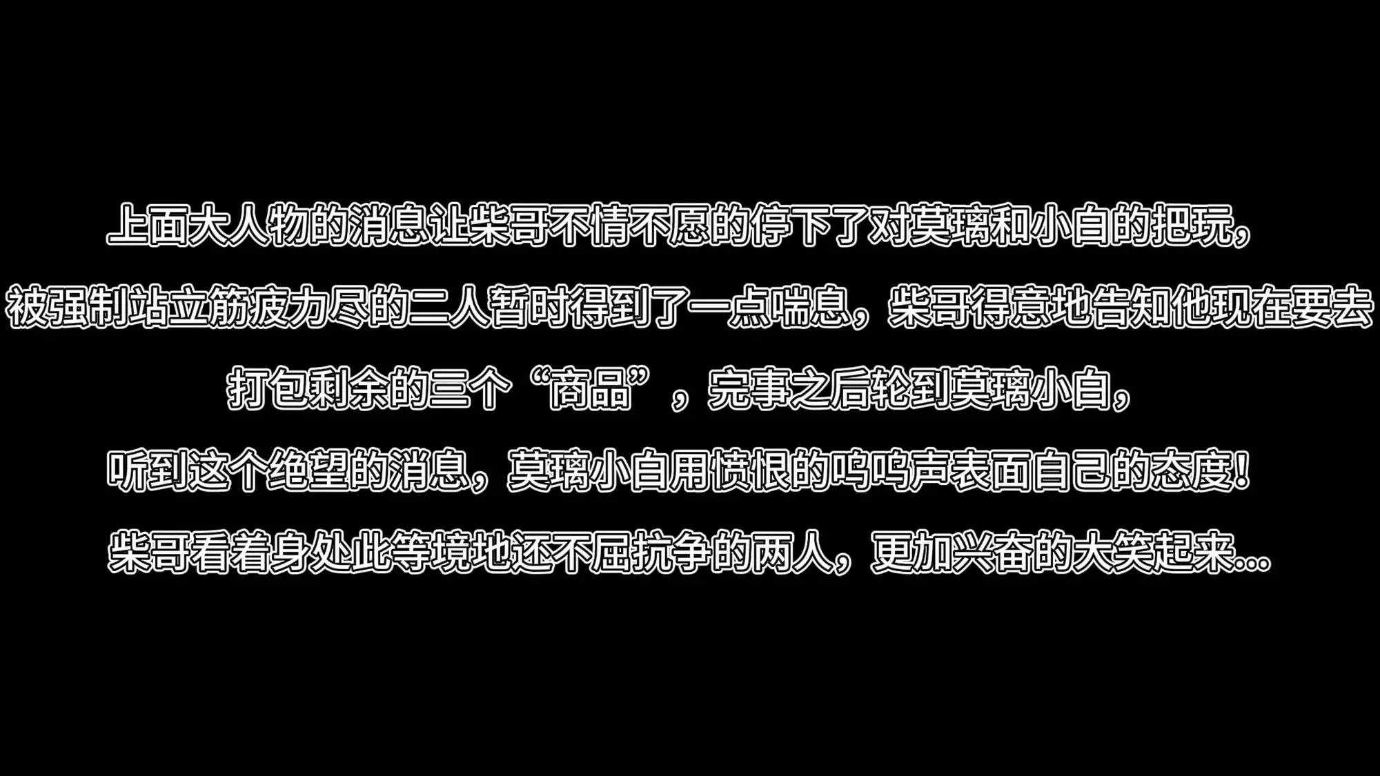 被强制站立筋疲力尽的二人暂时得到了一点喘息,柴哥得意地告知他现在要去