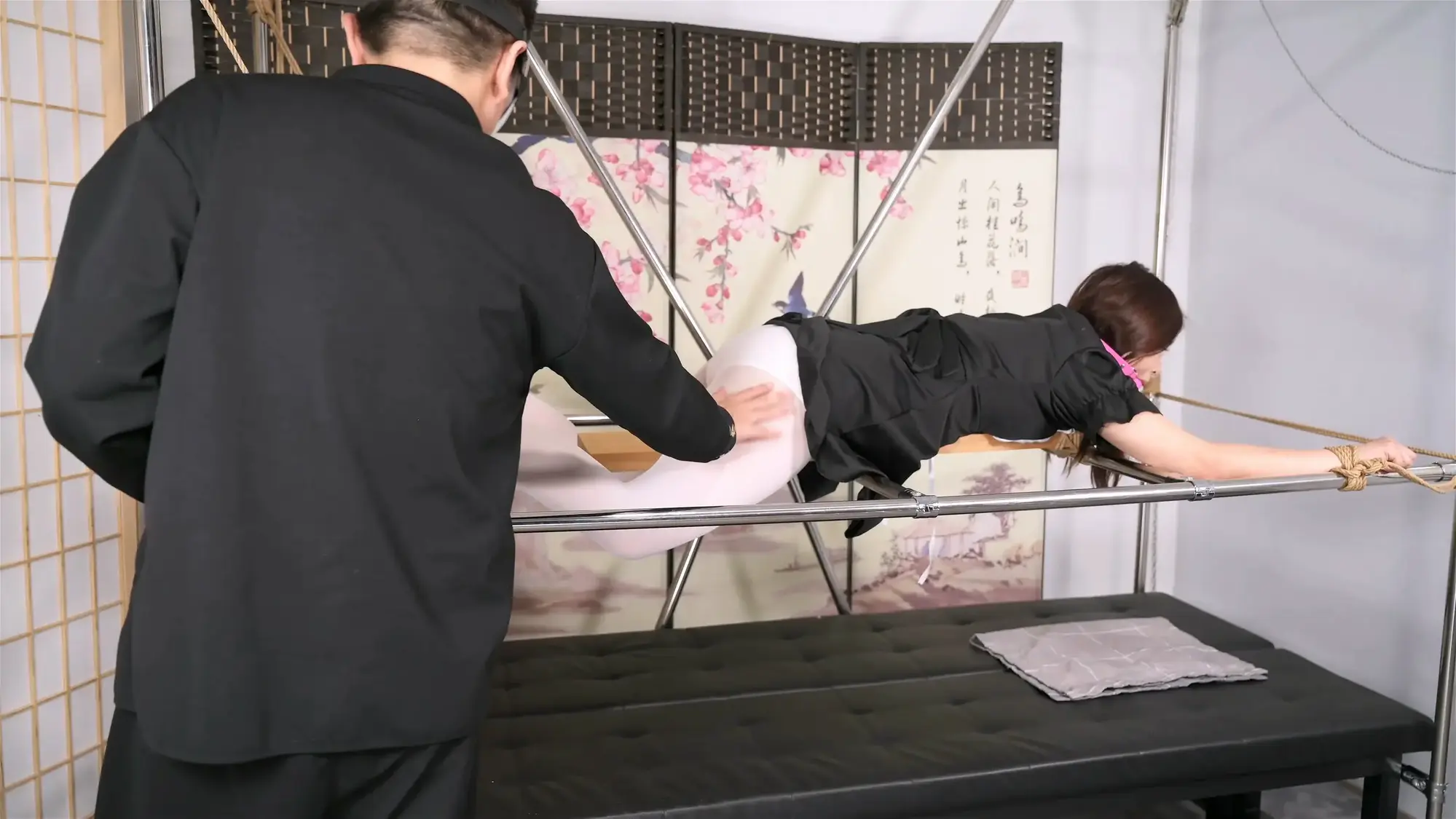 有首很老的歌叫《睡在上铺的兄弟》,我听这歌的时候脑子里一直在浮想有个妹子睡在上铺的场景,咱们今天就来演示一下如何强迫妹子睡在上铺,就是床板小了点,睡姿得是趴着。睡前的运动是必不可少的,妹子怕什么就来什么,对于雪碧来讲当然是怕痒了,刺轮对于她敏感的身体也是不小的折磨,等她精力消耗差不多了就可以安心躺在下面睡觉了,雪碧这次的呻吟声格外凄美,伴着入眠的最佳音效,当然这个姿势还可以解锁更多玩法,比如那小小的床板是可以前后移动的,高度正好设计在自己的腰靠下的位置,太多想象空间,就不在这里演示了。