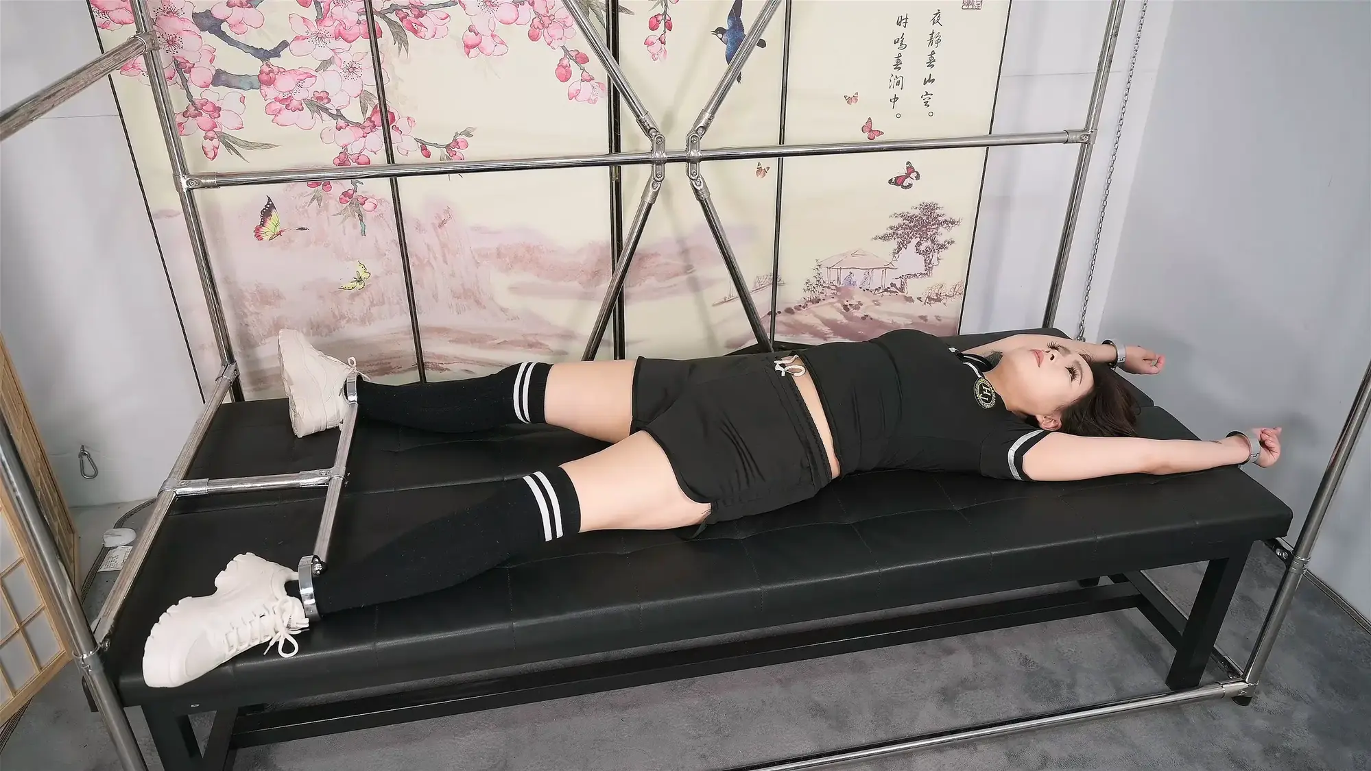 笑疯了笑疯了,全身都是痒痒肉的雪碧这回不知怎么痒筋被挑起来了,为了给她止痒,在她大腿上狠狠咬了两口,送她两块牙印表,这都止不住,甚至把手拿出来做个动作都得嗷嗷大笑,那就别怪我无情了,给她上个全身TK套餐,连脚趾缝和肚脐眼都给她挠挠。话说雪碧穿着这身运动装加上长棉袜和运动鞋,扎起头发来显得很有劲道,绝对领域也凸显了出来,本导当然要好好关照一下这个区域,另外腋窝、乳沟、鼻子、耳朵也趁着她今天这么Happy好好探索探索,肚脐和脚趾缝也都不能放过,搭配上声音更是全方位视听享受,她的呻吟声,平常听不到的嚎叫都有了,经过折腾,扎起来的头发也散了,却捕捉到了她绝美的瞬间