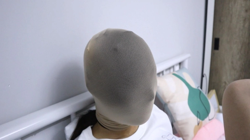 【趾间艺束】叶子丝袜蒙头蒙脸M形开腿秀美足 丝袜包头 一个新的尝试!
