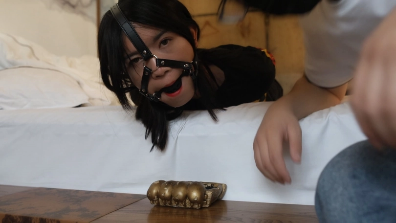 这是晶晶的第一场定拍,定拍的还是之前定拍过的老客户了,比较喜欢用胶水封嘴。有这方面相同爱好的朋友可以购买。中有马具口球的口水收集以及胶水+胶带封嘴,胶带捆绑和鞭打。
