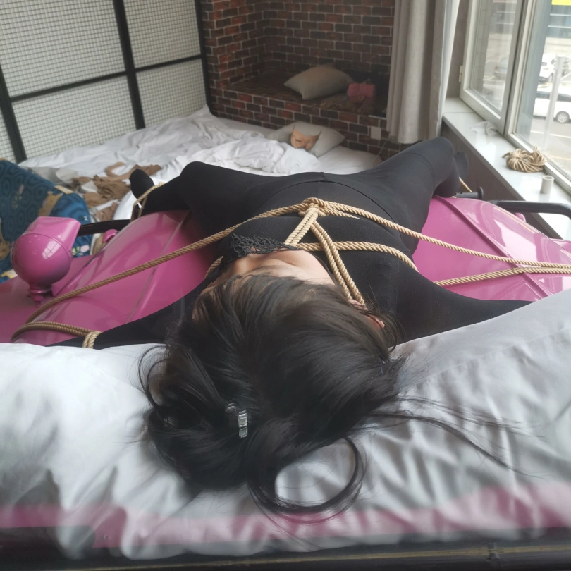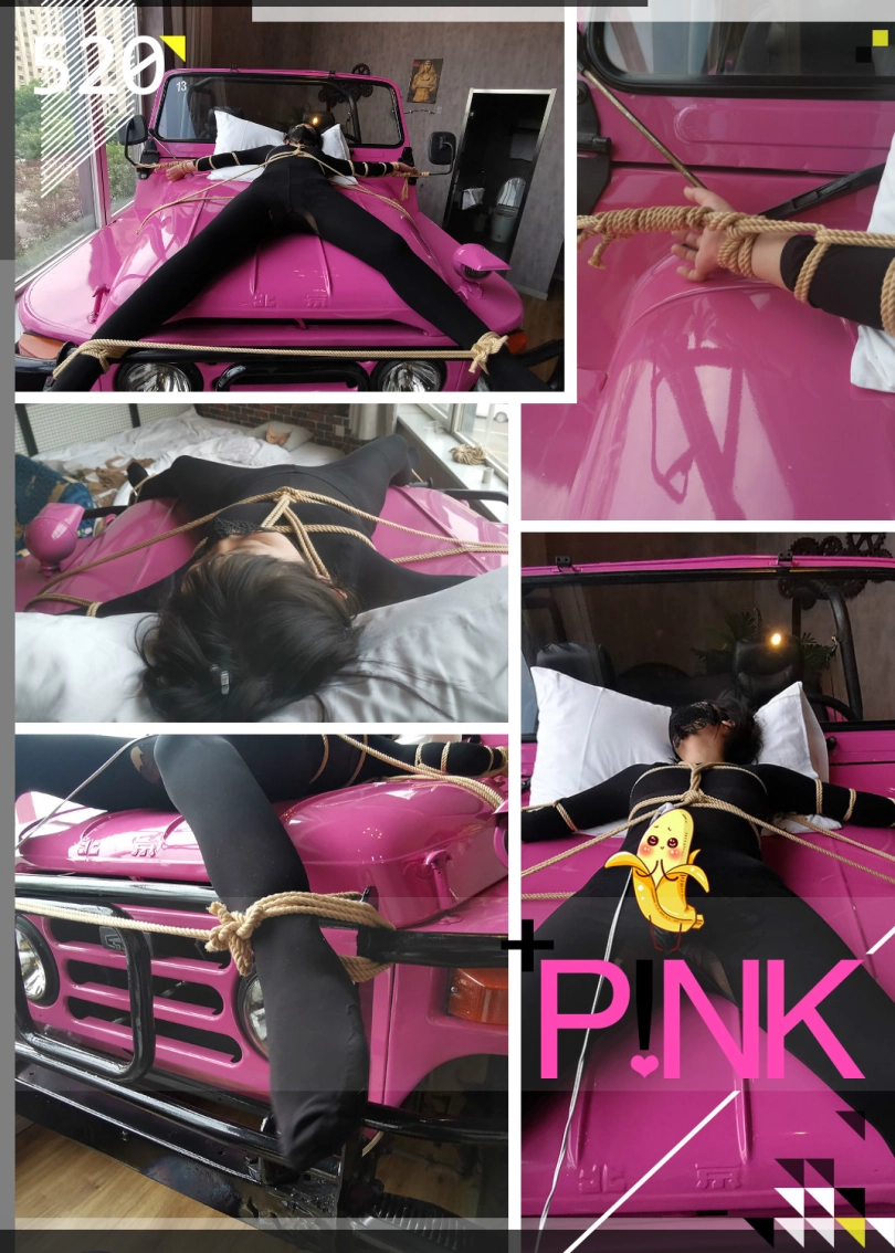 【JS】琳洛 车盖大字捆绑 黑色紧身衣 快感棒刺激