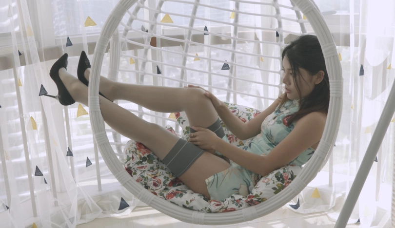 【4K映像】琪琪的夏日午后,摇篮,旗袍,长筒袜,高跟鞋,丝袜勒嘴,五花大绑。