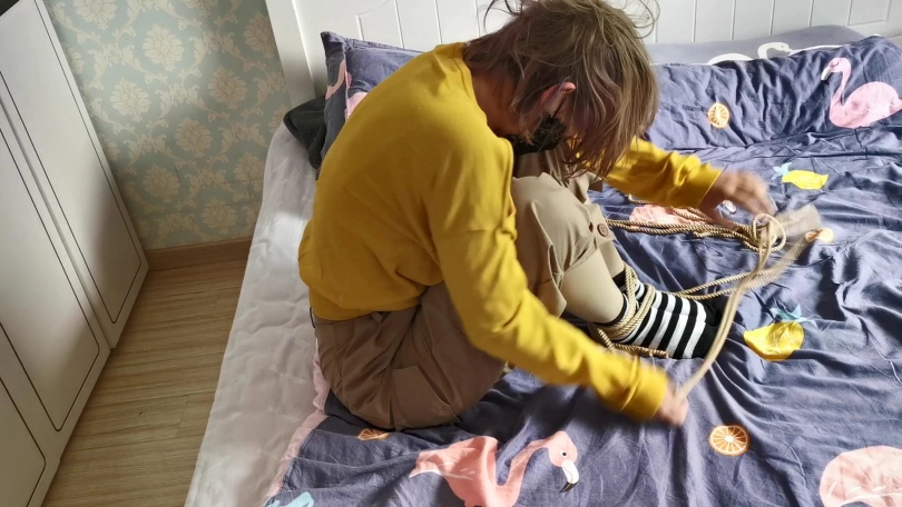 女贼入侵一间房屋,将熟睡中的女孩捆绑起来,并逼问钱财。但女孩并不想乖乖就范,女贼只能自己动手寻找。女孩则趁机解开了脚上的束缚,女贼这时进屋发现了并重新将女孩捆绑。没有找到财物的女贼气急败坏,用自己皮靴的高跟狠狠的踹着女孩,让女孩交出钱财。但似乎女孩把钱财看的比自己还重要,坚决不说。女贼只能用上杀手锏,脱去自己的靴子,将自己走了一天的棉袜脚捂在了女孩的脸上。女孩被着强烈的味道熏的受不了,不断的躲闪。女贼的脚不断的在女孩身上游走,刺激女孩的胸部和下面,不断的挑逗着。女孩强忍着下面传来的刺激感,不断呻吟,但就是不从。女贼玩累了便去了客厅沙发上休息,而女孩也利用这机会挣脱了束缚。。。