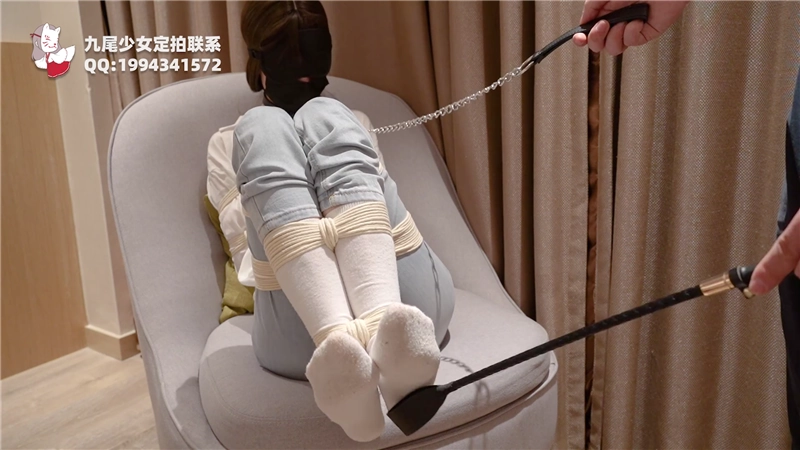 小九尾的常服牛仔裤+白袜被全身捆绑!TK双足调教,