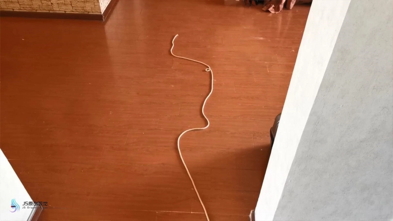 跳着奔向门口求救,但又被绳子套住,向后拉去。