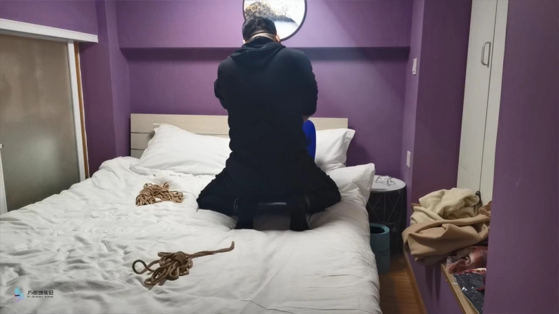 【JS】采文 性感蓝丝+后高手+股绳+团缚+蒙眼+口球堵嘴+挠痒+玩足