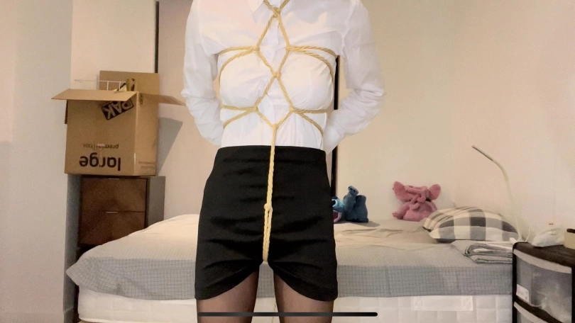 OL风格哈。视频分为三部分(开头有彩蛋“柯柯打屁股”,因为上次视频比例处理不当柯柯的承诺兑现),第一部分是大概8分钟的菱缚自绑,第二部分是手背在身后戴上手铐(也许是展示身材?柯柯也不知道拍了这一段目的何在),最后是床上驷马捆绑挣扎,后面因为连着脚裸的绳子收的太紧结果把上半身的束缚给拉脱了,以后柯柯在捆绑的时候会注意的!