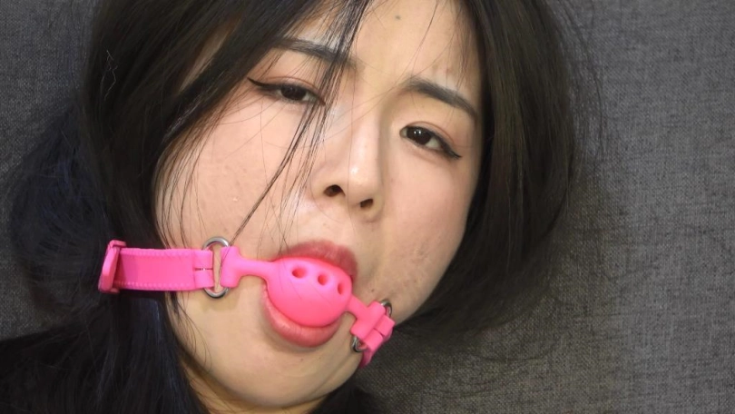 小狐狸穿着紧身牛仔裤,被全身捆绑,不断挣扎。丝袜堵嘴,口球塞嘴。