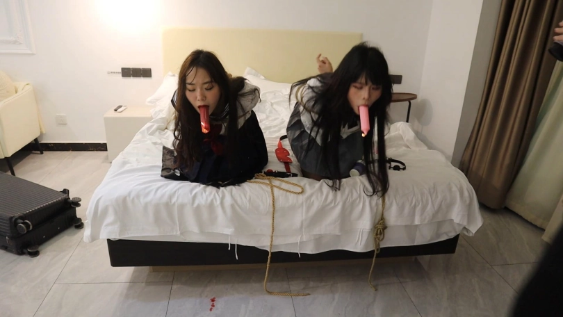 【荷仙少女】独家第二弹《荷仙剧本》《陌生男在302房间的学生姐妹捕获调教》2 强迫学生姐妹曼妮驴驴捆绑跪罚 震动+口球口水收集+香舌舔球+口含蜡烛滴蜡+言语羞辱+鞭打虐待 全程求饶直至崩溃