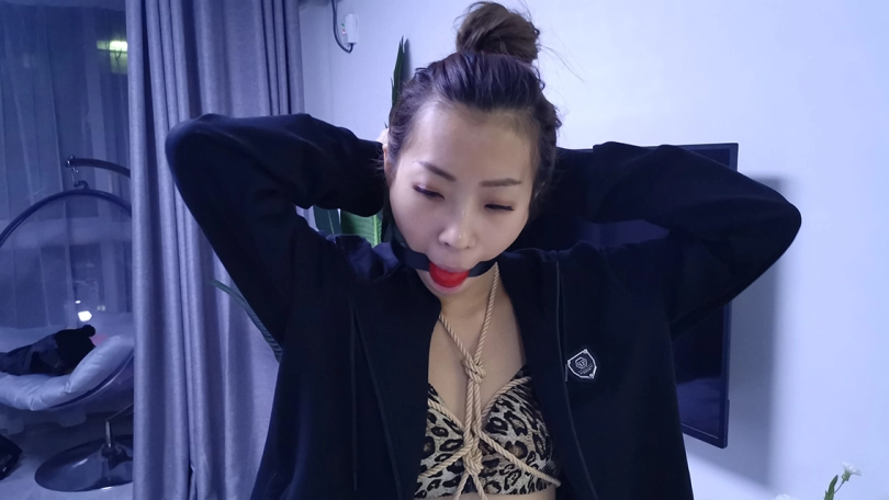 穿着性感豹纹内衣绑个龟甲,下面塞个小玩具,嘴里塞上口球外面带上口罩,在车上司机就不断的从后视镜像后看,路过一路口时又JC查岗,这时调皮的艾诺居然打开手机灯光照自己捆绑的身体,JC也成功的被车里的光吸引到,但好在没过来。下车后找个地方艾诺用小棒棒尽情的自嗨抚摸自己,嗯 真会玩。