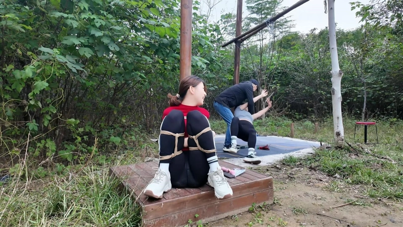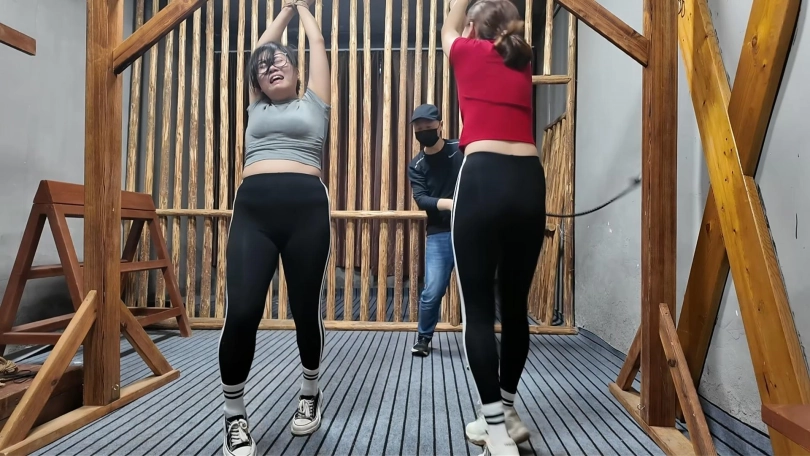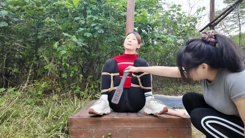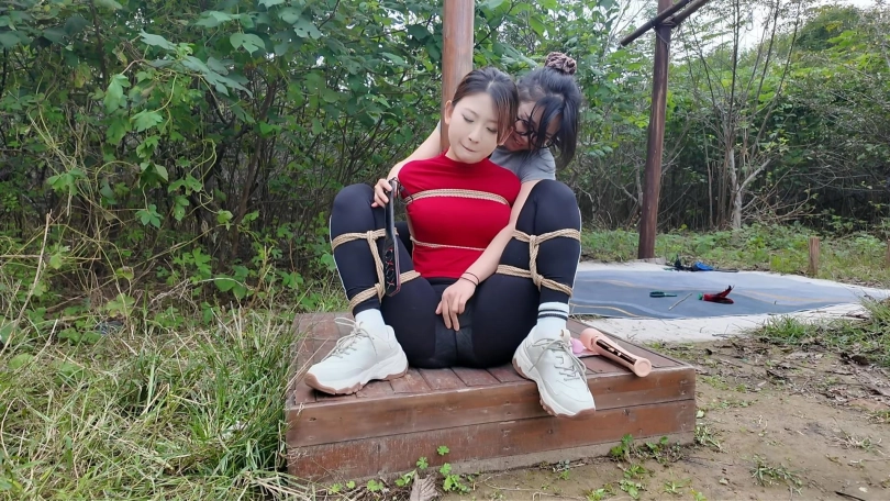 两名女孩踏青,在野外玩SP游戏,玩的正酣,不料被一名神秘男子从后面捂住口鼻,接着又把被绑着的女孩捂晕,把她们带到一个废弃的院子里面,双双绑到老虎凳上面,TK,双双吊起来SP,左右开工,好不快活,最后竟然拿出双棒棒,同时用棒棒刺激两名女孩..