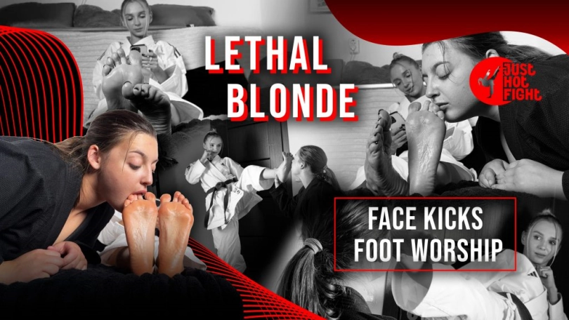 The Lethal Blonde demonstrates her kicks while the girl enjoys the smell of her feet. In the end, it turns into foot worship. To find out what happens next, watch the full version of the video.