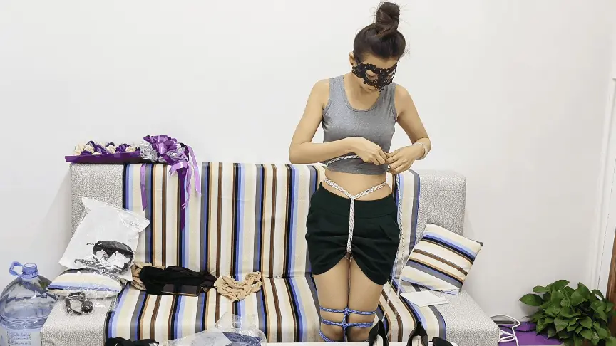 周末诺米一人在家,突然想玩一下自缚,自己找出绳子和丝袜慢慢捆绑好,然后拿出震动棒按摩敏感地带,下面渐渐地湿了。就在她即将高潮的时候,蒙面人闯进了她家了,将她一遍又一遍捂晕然后抚摸她的全身,她每次晕倒前都会翻白眼。等坏人离开后,她迅速挣脱开来然后成功逃脱了。