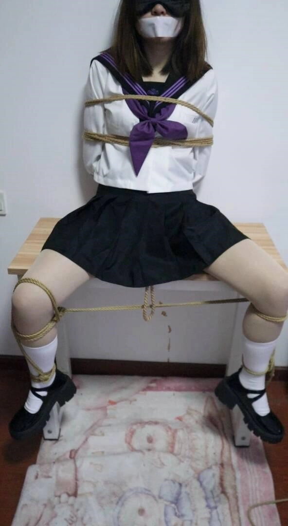 【领玥】紫水手服的少女被死死绑在桌子上,双脚被绑在桌子腿上,在玩具和马鞭的双重打击下,一边挣扎一边哭喊着你放过我吧!