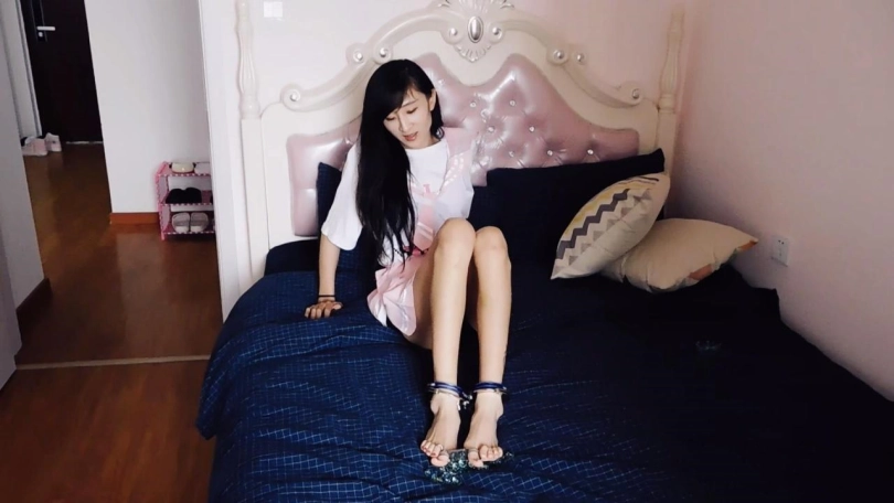 妹子想偷偷出去玩,做好趾甲穿好鞋袜,悄悄走到门口,因为不想被哥哥发现,悄悄的有点心虚。然而还是被哥哥发现了,不让妹子出去,要求赤脚完成一项挑战才可以出去。哥哥要求妹子在门口那里脱掉鞋袜,赤脚走过来,脱的过程慢一些 ,显得很害羞。挑战是在10分钟内把玻璃球从一处移动到另一处,带着脚铐,只能用脚来。先给妹子戴上脚镣,开始挑战。觉得难度不够,给妹子加上脚铐、脚趾铐,继续挑战。妹子挑战失败,被哥哥惩罚,挠脚心。哥哥放下妹子,自己走了,妹子带着镣铐挣扎。