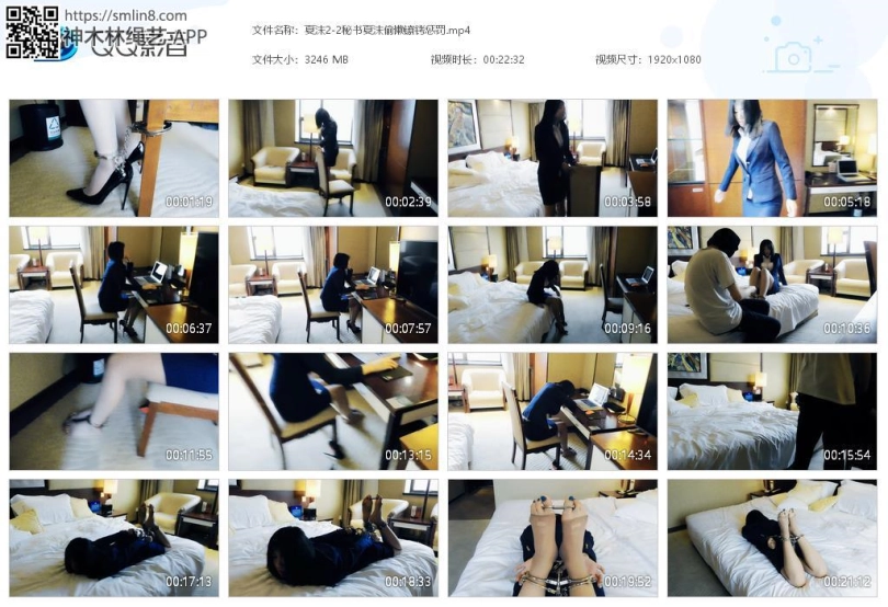 秘书被老板批评,因此被老板用长脚镣锁在椅子上办公,一只脚拴在椅子上。秘书干了一会,想偷懒,拉着椅子到处走,然后发现脚镣从椅子上弄下来了,很开心。老板回来看,秘书竟然没好好办公,而且从椅子上跑了出来,于是把她的两只脚都锁了起来,让她好好工作。秘书干了一会又不想干了,戴着脚镣下地走走,活动一下。老板再回来了,发现秘书又没好好办公,撕开丝袜,锁上脚趾铐、板铐脚腕,让她在椅子上好好工作。秘书工作一会,又累了,看着动不了,索性趴桌子睡了。老板看到后,十分生气,把秘书弄到床上,驷马镣铐,留下秘书走了。秘书挣扎很难受,一边求老板回来,一边咒骂老板。