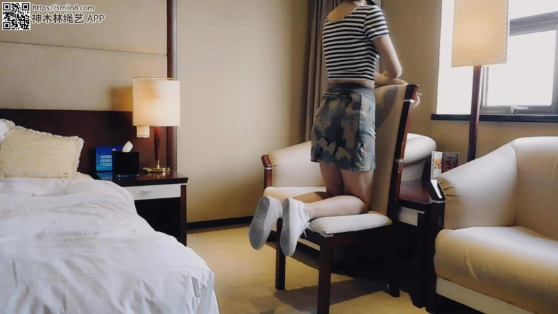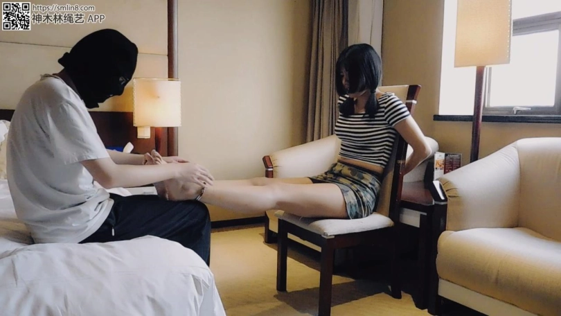 妹子在屋里无聊中,然后坏人突然出现,把她弄到椅子上,手背后锁住,脱下鞋袜,脚趾脚腕锁住,挠脚心。之后换个角度。全程都在挠脚心喔。