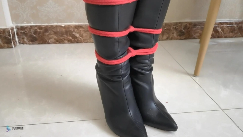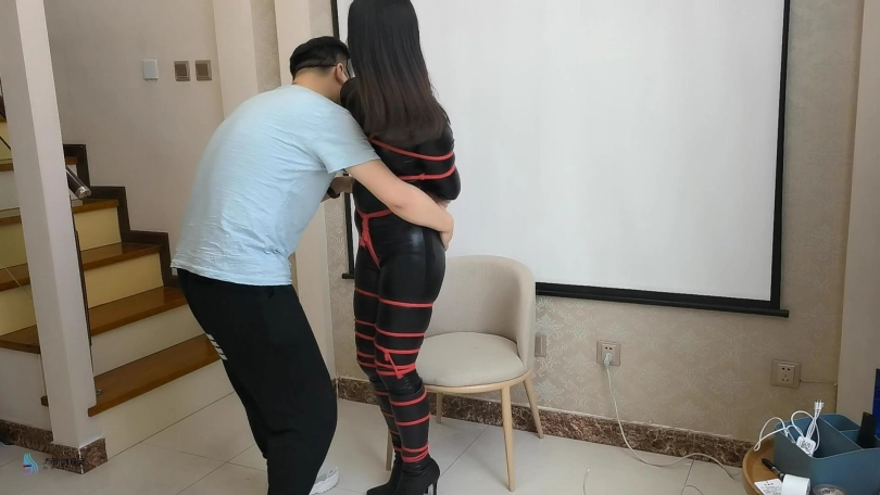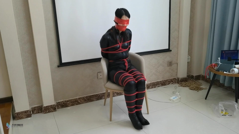 人贩用红色的绳子将诗彤捆绑起来,再绑上股绳,她的双腿从脚部开始,被绳子一圈一圈的紧紧束缚起来。人贩将让她坐在椅子上。用一团不塞进她的嘴里。并用红色胶带缠绕她的嘴巴和眼睛。诗彤看不到也叫不出声,每次挣扎,胯部的股绳都刺激着她敏感的地方。这使她很难受,不敢有太大的动作。只能在椅子上“呜呜”的挣扎着。