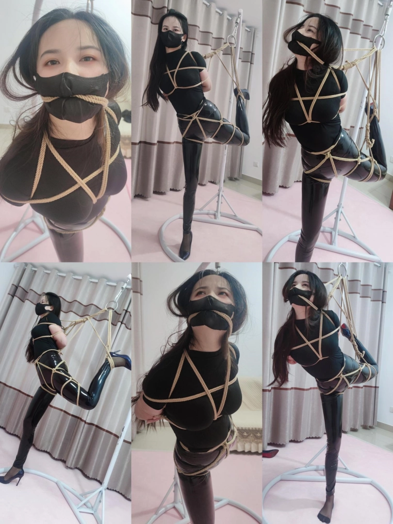 【素人】美女裤里丝袜皮裤细跟高跟鞋股绳后高手超级难受单腿吊缚放置展示