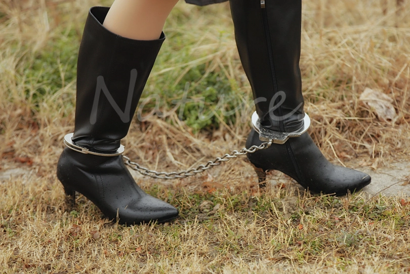 冬季的江南还是挺冷的,原本以为小妹不敢在公园里玩镣铐,事实证明是我想多了,妹纸不但无所谓,而且碰到行人也不怕,倒是我这个摄影提心吊胆,哈哈。起初用了短链脚铐,妹纸嫌短迈不开步子,于是换了副长的。换下来的短的就当手铐戴手上了,还挺合适。可惜天公不作美,拍着拍着就下雨了。