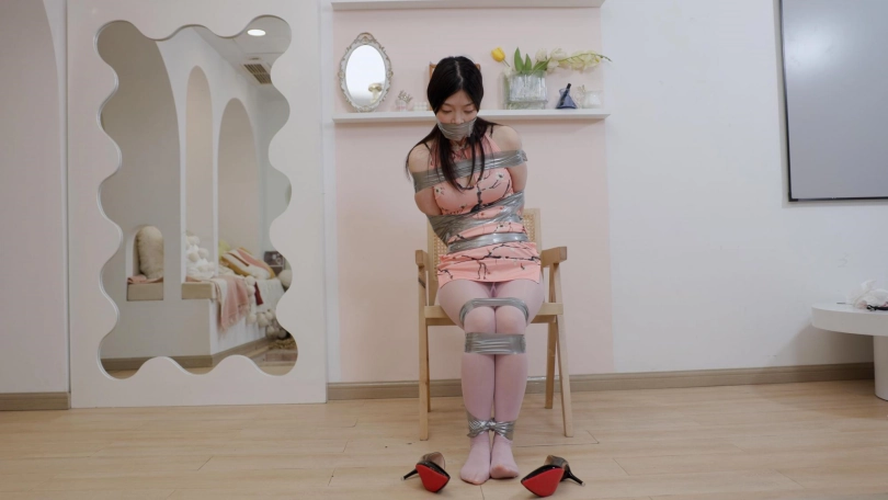 【8K影像】寂寞的小妹在家独自玩耍 银色胶带