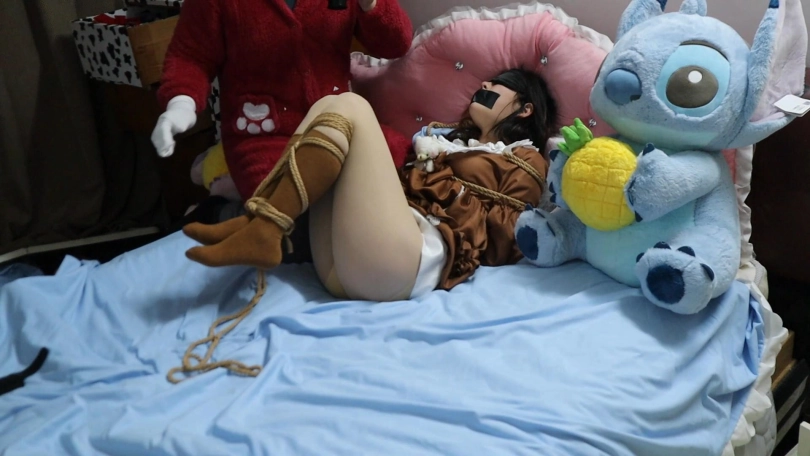 【领玥】股绳子虐待,超级捆绑痛苦,狠勒股绳子+扇脸+踩踏+蒙鼻+鞭打+拿棒子锤+tk 铐撩绑完绳子继续绑,本玥的惨叫呻吟声就没停下来过,绝对虐待可爱的棕色洛丽塔少女本玥