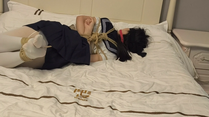 【美束映画】水手服居家少女被入室劫匪绑架囚禁 白色丝袜 驷马海老缚