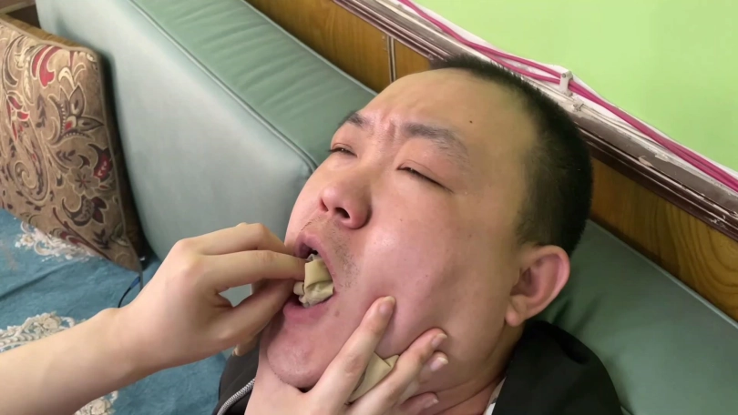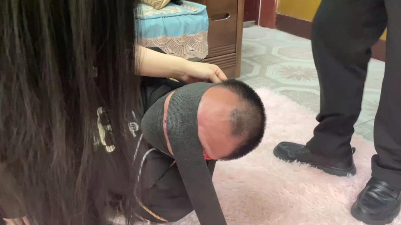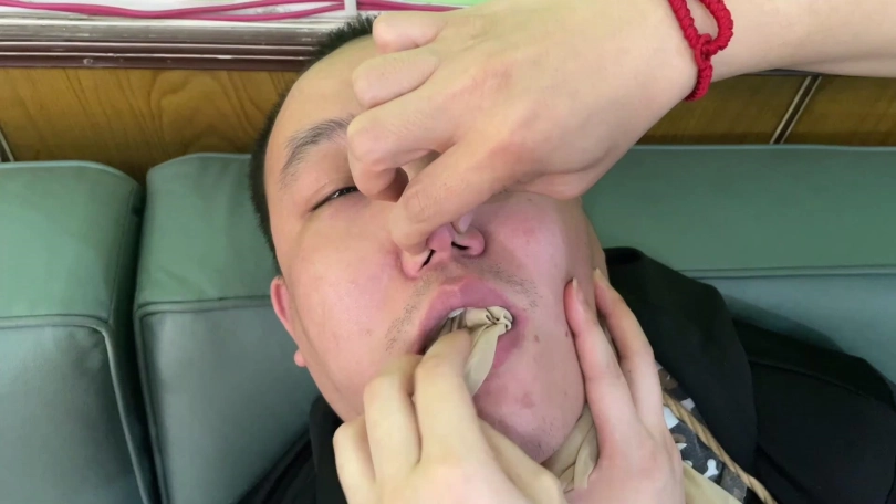 胡子哥经常和吴晗以及吴晗弟弟作对,不堪其扰的吴晗带着男友入室迷晕捆绑胡子哥,故意拿胡子哥女友穿过还没洗的几只肉色短丝袜一只只塞到他嘴里,而后去翻找胡子哥的财物。