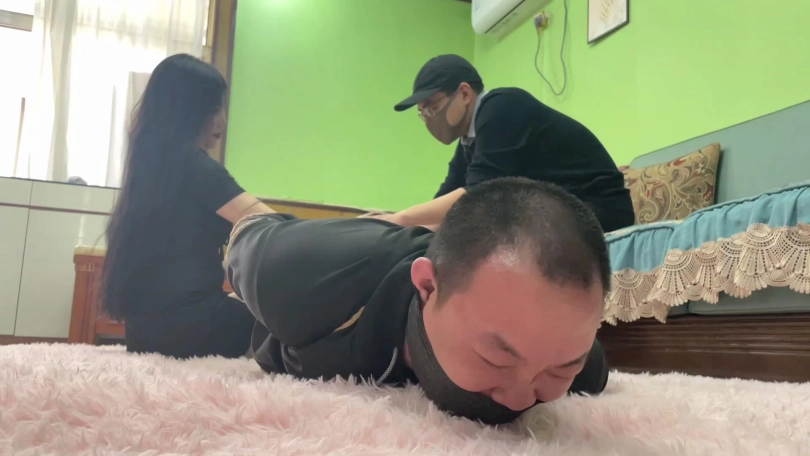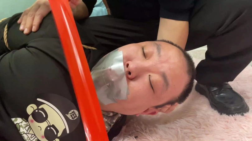 胡子哥在黑暗中呜呜闷哼扭动身体挣扎着,但是始终无济于事,最终只能减小挣扎幅度等自己女友回来给自己解开。