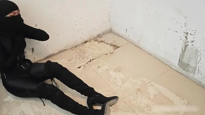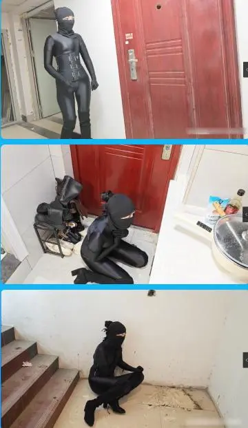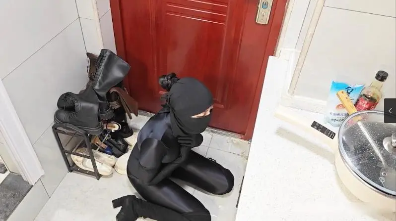 紧身衣蒙面女贼入室盗窃结果中了机关痛苦离去