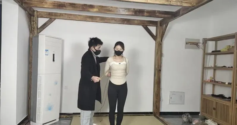 单脚被吊起来身体在空中无法保持平衡,被折磨的.......