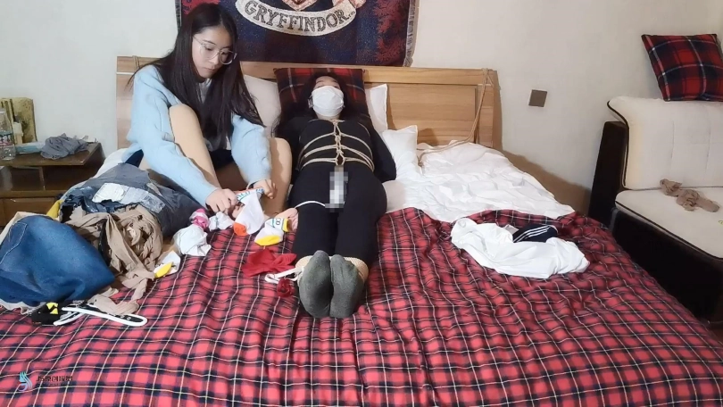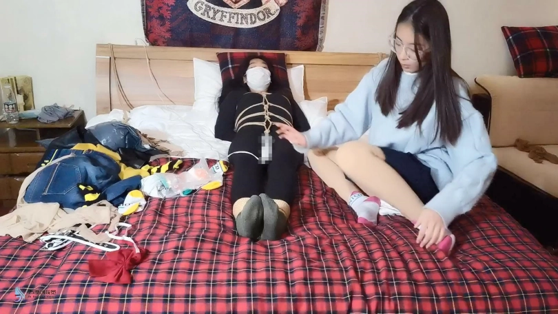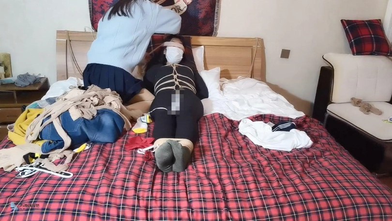 实在太困了,想睡一会。就对待不住的采文说“你想拍可以自己拍着玩”。没想到这丫头趁我睡着了,真的把女M推进房间捆绑玩虐起来。发现采文玩的还挺嗨的。