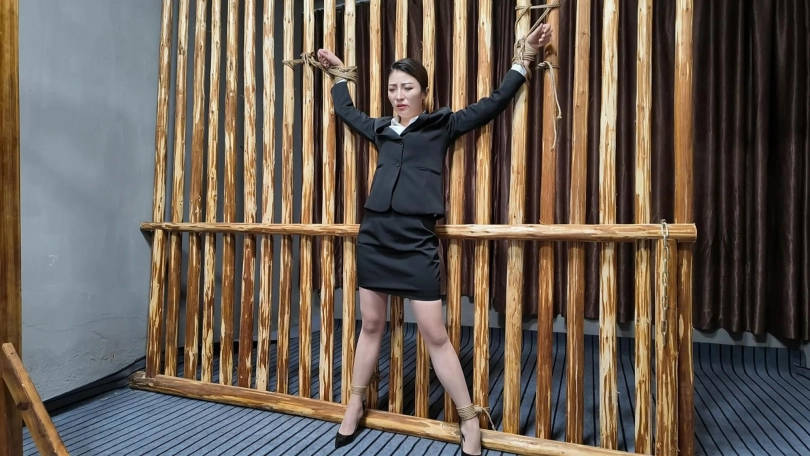 佳佳职业装被绑到牢房里面鞭打,衬衣扣子都打开了...最后直接晕过去了...