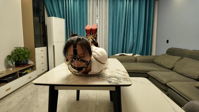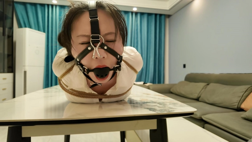 给紫涵欧式驷马放置到桌子上,要求就是一定要紧,马具口塞把头拉起来,最后解开疼的紫涵哼哼半天