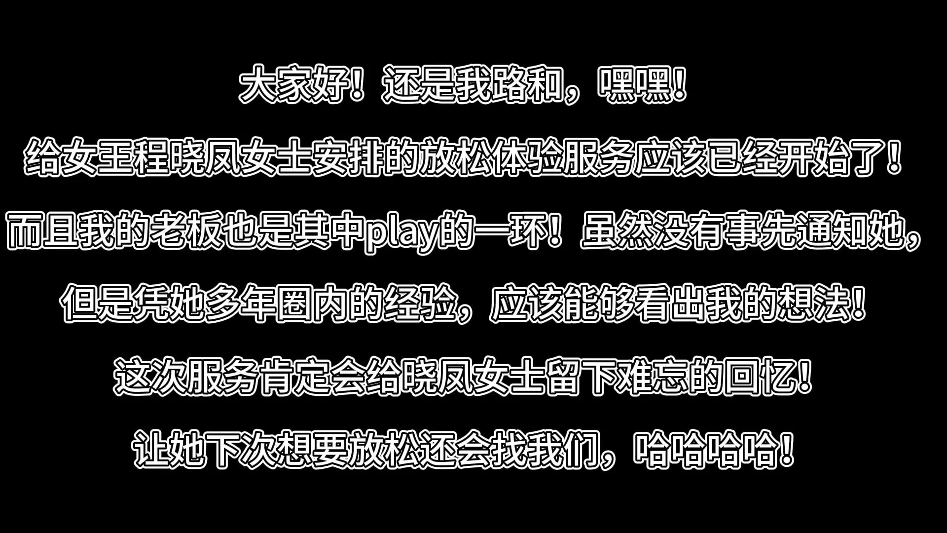 给女王程晓凤女士安排的放松体验服务应该已经开始了!