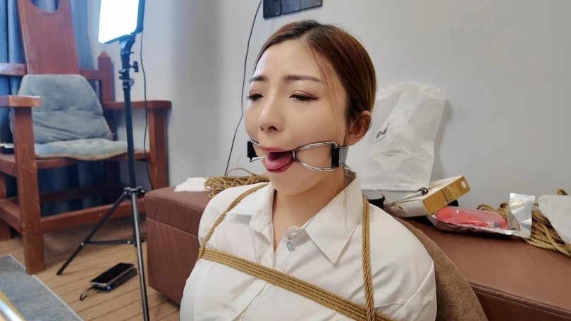 佳佳后手观音口塞训练第一期,一个后手观音捆了半个多小时,这次试用了两种口塞,分别是狗骨头口塞和不锈钢口环,还是口水直流啊,工作室一共准备了十几种口塞,一样一样的都要给她慢慢尝试训练