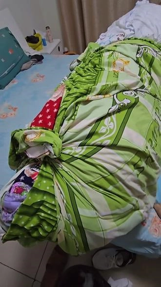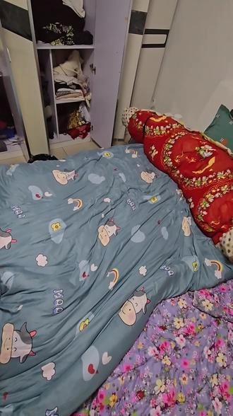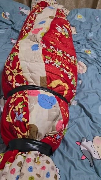 【小黑】四层棉被+床单,棉被包裹木乃伊,棉被全包细小呼吸管,呼吸不过来,大夏天太闷热了。