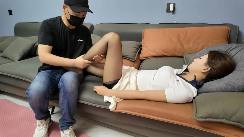 青春靓丽美少女晓琴锻炼完回到家,刚躺沙发上休息,被早已藏在家里的歹徒捂晕