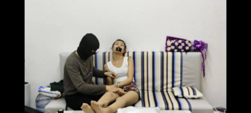 【睡美脚】【诺米的午后劫难】鼓掌昏迷横抱胶带封嘴反复捂晕翻白眼TK闻脚肉丝捆绑