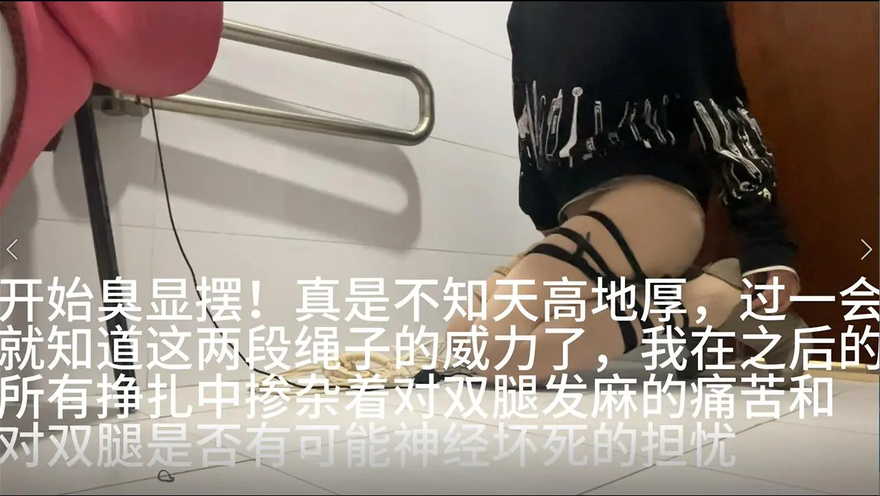 第一次在学校的厕所自缚,讲真的感觉不是一般的刺激,一有脚步声就害怕是来检查的保安大爷什么的......整个人都提心吊胆的。自缚手法就是一个简单的棘轮后手吊缚,加两个憨憨折腿缚,口罩里面有个口球,属于戴上就吐不出来的中间有根金属棍的那种,口水真的止不住地流出aaaaaaa