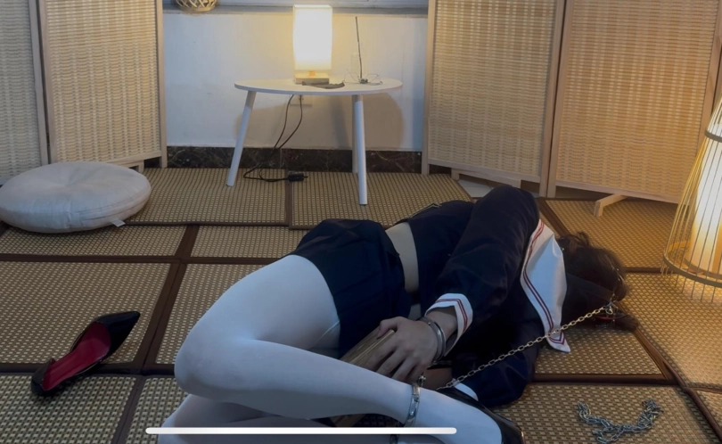 第一次自己体验这个姿势,不得不说真的很有感觉…把所有钥匙用定时锁锁在木盒子里面,保证在时间结束之前打不开木盒子,然后把马具口球头顶的环和脚用锁链连上,再铐上手铐形成驷马,然后就享受咯~