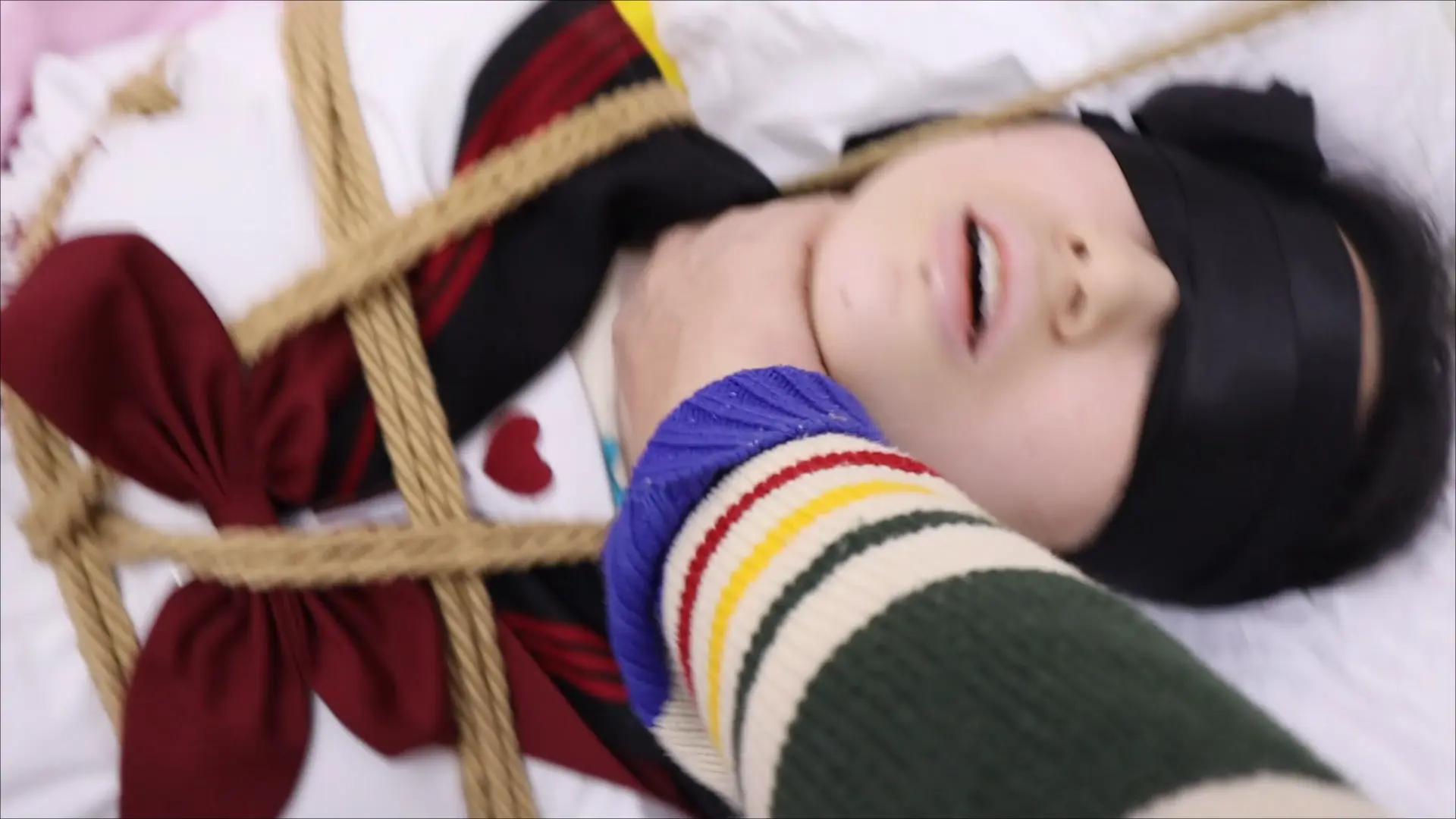 【荷仙少女】非常喜欢被捏ru掐脖的女孩,吊起一条腿绑起来,一边抚摸一边捏ru掐脖,呻吟从开始就没停下来,突然觉得这个深红颜色的JK袜子也挺好看