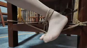 女朋友晓琴按要求被捆绑直臂,颈部勒紧,丝袜勒嘴,头只能仰着进到刑房,跪下接受调叫,绑到刑椅上面,脚趾绑上,后面手臂捆紧,继续勒嘴,下面固定棒棒,打开最大档位,让她在痛苦中快乐无边